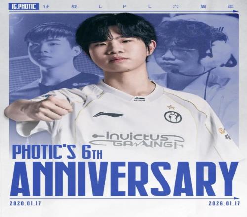 体育播报1月17日宣今日是IG下路选手Photic登场LPL六周年,IG为其送上祝福,具体如下: